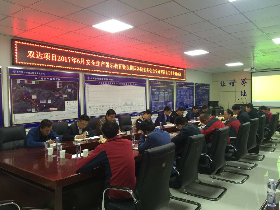 為進(jìn)一步強(qiáng)化安全基礎(chǔ)管理,落實(shí)省公航旅集團(tuán)對國務(wù)院安委會安全生產(chǎn)巡查相關(guān)工作的具體要求,靠實(shí)項目安全生產(chǎn)管理責(zé)任,提高全員安全生產(chǎn)意識,充分做好迎接國務(wù)院安委會安全巡查準(zhǔn)備工作,雙達(dá)項目辦于2017年6月7日晚組織雙達(dá)項目各施工、監(jiān)理單位召開了2017年6月安全生產(chǎn)警示教育暨迎接國務(wù)院安委會安全巡查準(zhǔn)備工作專題會議。