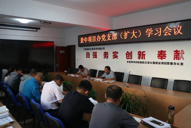 2018年8月21日,甘肅路橋公路投資有限公司景中項(xiàng)目辦召開了黨支部(擴(kuò)大)學(xué)習(xí)會議,項(xiàng)目辦全體人員參加會議。