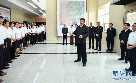7月15日至16日,中共中央總書記、國家主席、中央軍委主席習(xí)近平在內(nèi)蒙古考察并指導(dǎo)開展“不忘初心、牢記使命”主題教育。這是16日上午,習(xí)近平到內(nèi)蒙古自治區(qū)自然資源廳,實地調(diào)研指導(dǎo)開展“不忘初心、牢記使命”主題教育。