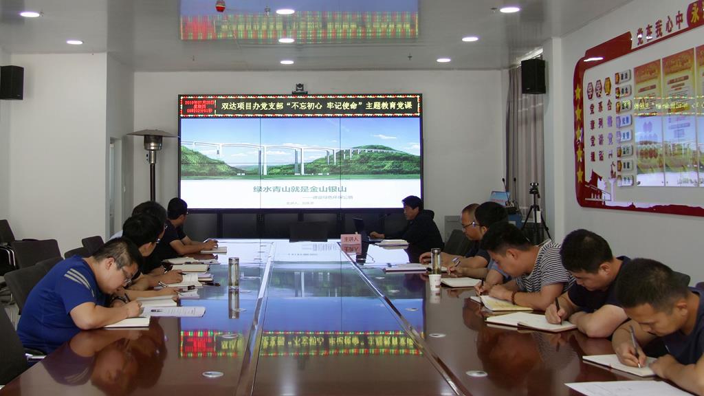 7月25日上午,雙達(dá)項(xiàng)目辦黨支部開(kāi)展了“不忘初心、牢記使命”主題教育專(zhuān)題黨課,黨支部書(shū)記作了題為“綠水青山就是金山銀山--建設(shè)綠色環(huán)保公路”的專(zhuān)題教育黨課。